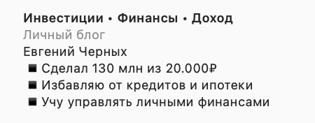 Евгений Черных – это блогер-аферист рассказывающий сказки о своих невероятных прибылях полученных с фондового рынка. Всё делается для того, чтобы впарить очередной обучающий курс и подписку на платные сигналы.